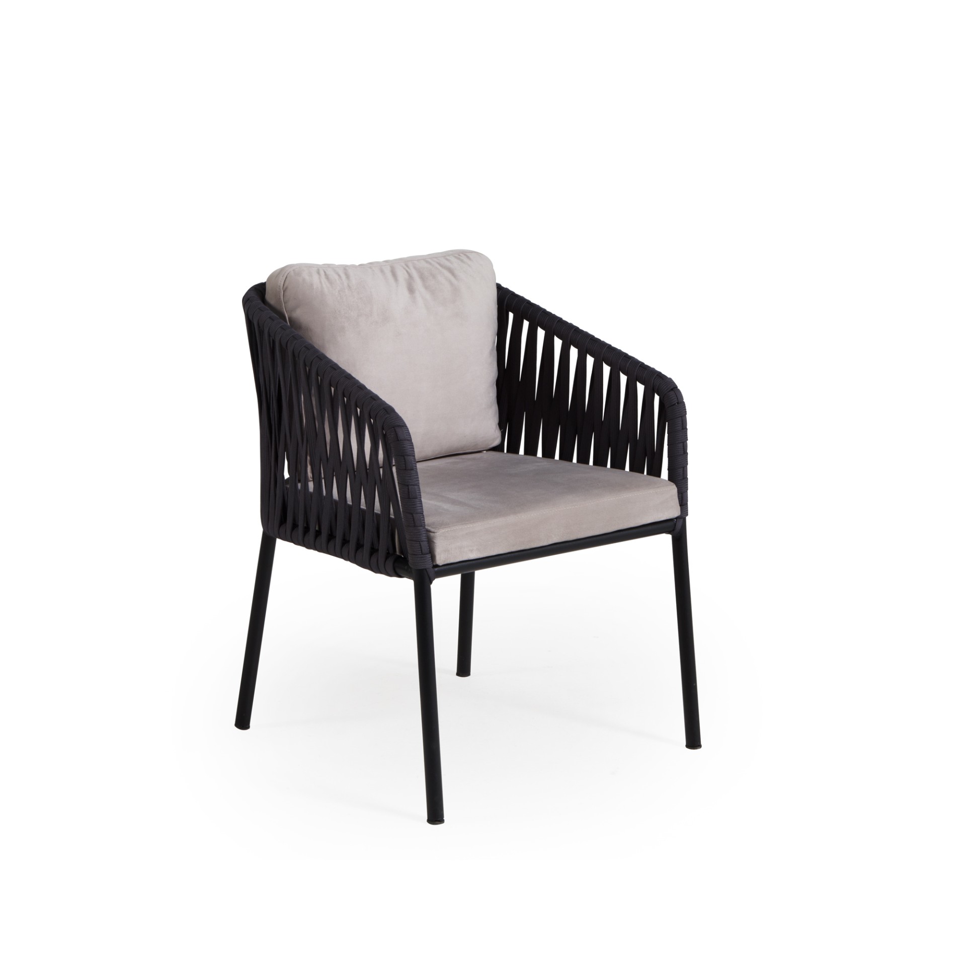 UV dayanımlı dış mekân kaplaması, sağlam metal gövdesi ve uzun ömürlü örgü ip detayları sayesinde restoran, kafe, otel terasları, villa bahçeleri, kış bahçeleri ve havuz kenarı projelerinde güvenle kullanılabilir. Modern formu, sade çizgisi ve dayanıklı yapısıyla profesyonel dış mekân projelerinde hem estetik hem fonksiyonel bir çözüm sunar.