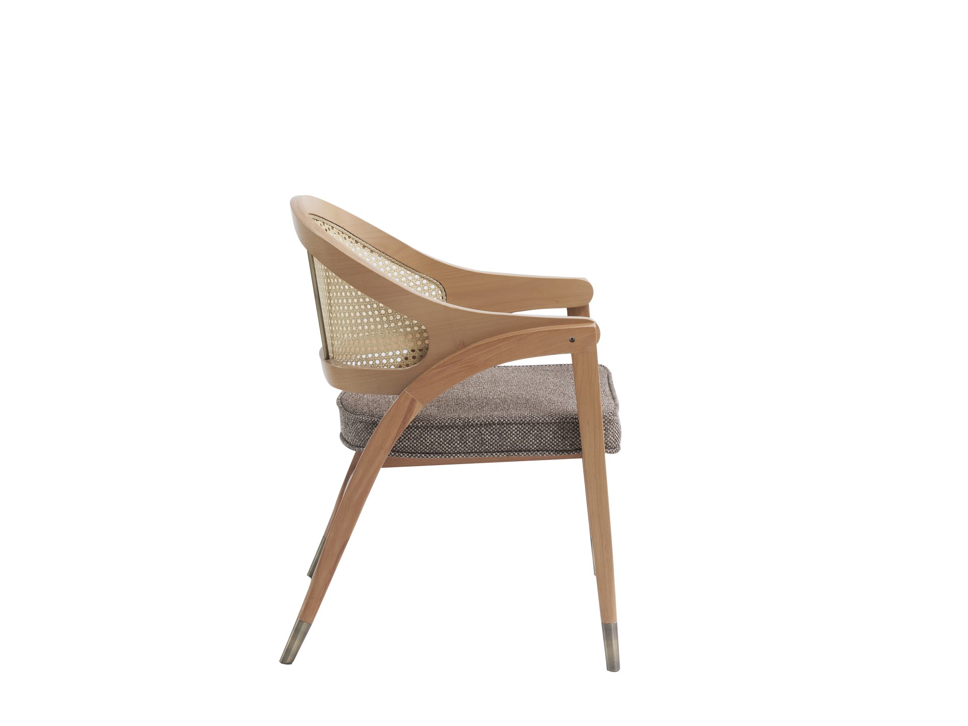 Dayanıklı masif ahşap gövde, yoğun kullanıma uygun güçlendirilmiş bir yapı sunar. Alt bölümlerde kullanılan metal uç detayları ise modern çizgiye zarif bir vurgu yapar. Yumuşak dokulu geniş oturum minderi, restoran, kafe, otel, villa, sosyal tesis ve seçkin konut projelerinde konforu bir üst seviyeye taşır. Hem şık hem de fonksiyonel olması sayesinde iç mimarların proje seçimlerinde öne çıkan modellerden biridir.